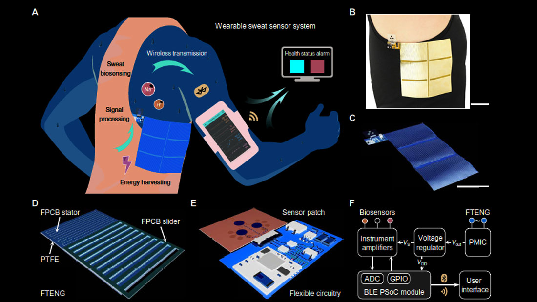 简单而稳健的摩擦电收获器为汗液感应补丁提供动力