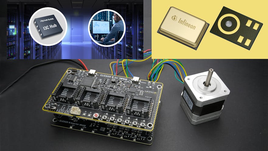 Check out some of the latest products from around the industry. Featured are a family of intelligent I3C switches for the data center and an automotive-grade IMU with built-in machine learning. The gallery also highlights a series of MEMS microphones with selectable power modes for consumer devices and a development board for BLDC motor control systems.