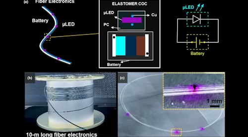新系统的关键是一组成型的硅树脂和微流体液态金属轨迹,它们作为电极产生火花,点燃直径为5毫米、高为2毫米的硅树脂圆柱体中稀薄的甲烷-氧气燃料混合物。放热反应迅速加压气缸,置换硅胶膜高达6毫米在1毫秒以下。在这些小尺度上,壁淬火焰行为允许研究人员构建一个3 × 3阵列的圆柱体直径为3毫米,间距为4毫米(图2).